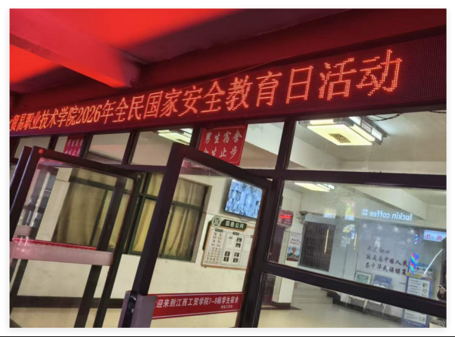 营造宣传教育浓厚氛围。 4月15日当天,学校在办公楼、教学楼、学生宿舍、实训楼等区域通过电子屏滚动播放国家安全宣传标语、宣传视频和主题宣传图片,张贴宣传海报,悬挂宣传横幅,全面营造“统筹发展和安全 护航“十五五”新征程”的浓厚宣传教育氛围。同时,规范使用“4·15”全民国家安全教育日活动标识。